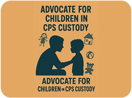 Our members actively stand up for what is right by advocating for children caught within the CPS system or facing unsafe situations.